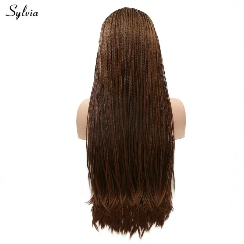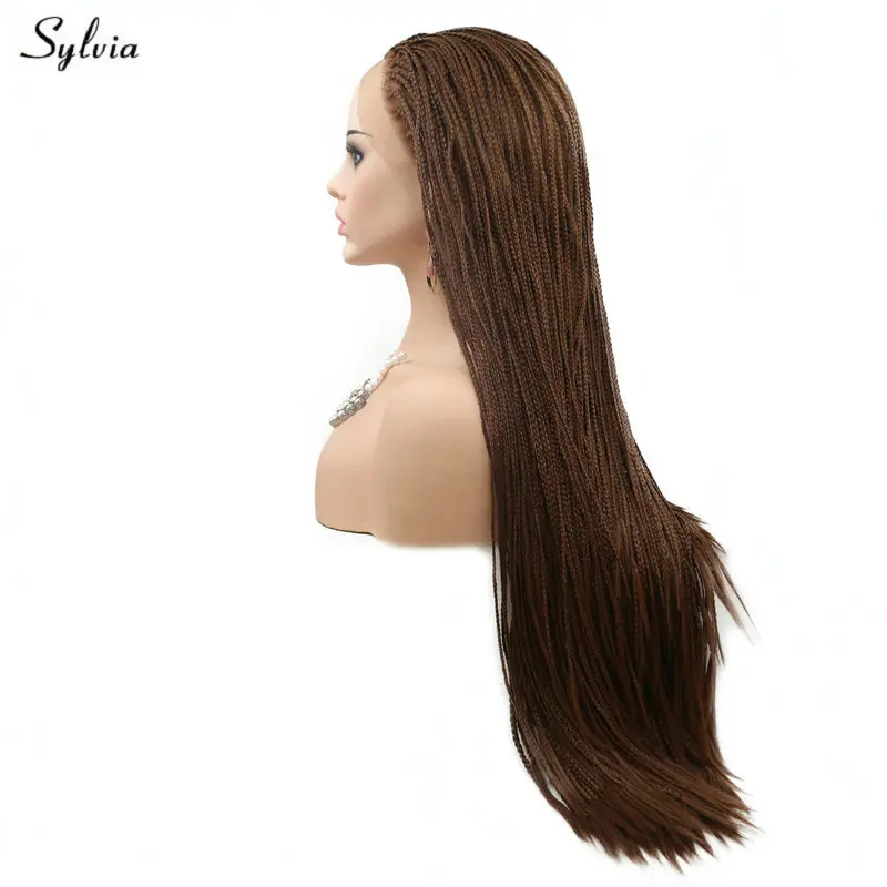 BEST QUALITY Sylvia Braided Box Braids Wig Long Hair Natural Hairline Brown Synthetic Lace Front Wigs for Women