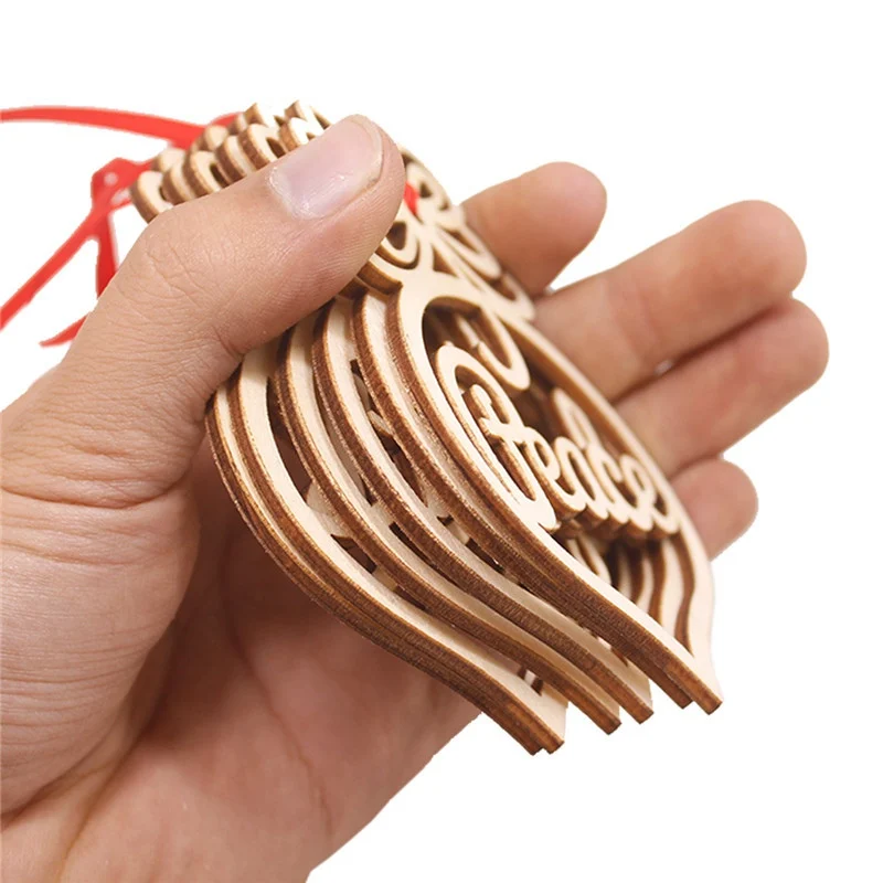 6PCS Wooden Cutout Christmas Pendant With String Unfinished Wood Slices Xmas Tree Drop Ornament For