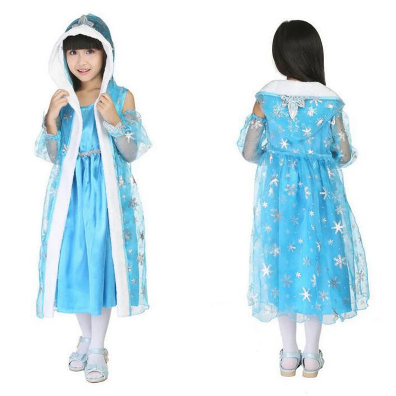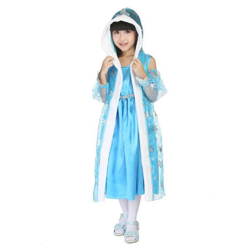 Elsa Princess Dress Halloween Costumes for Children Blue Princess Dress COSPLAY Theatrical Costume